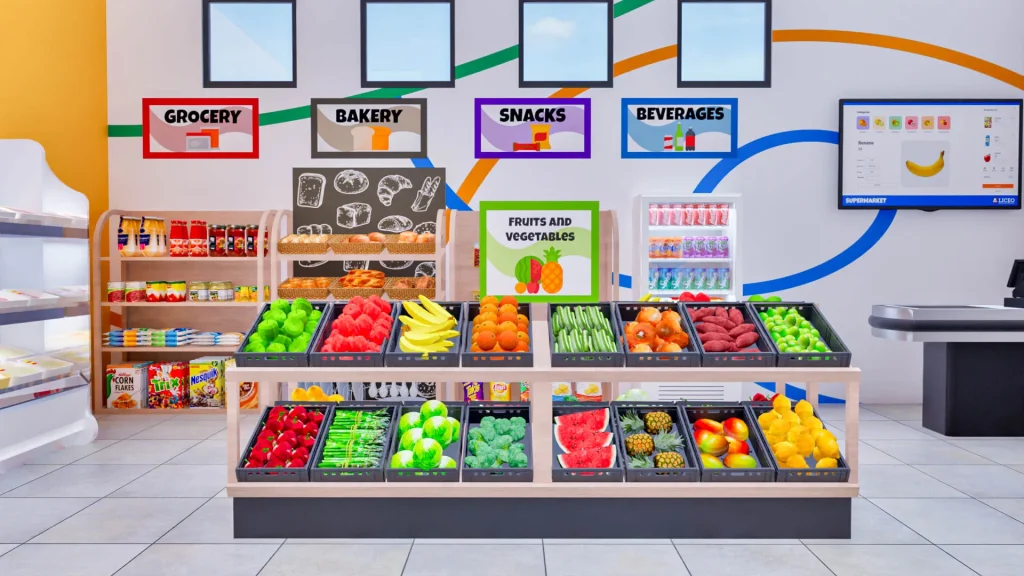 Abarrotes, panadería y más, diseñados para una experiencia de compra realista.